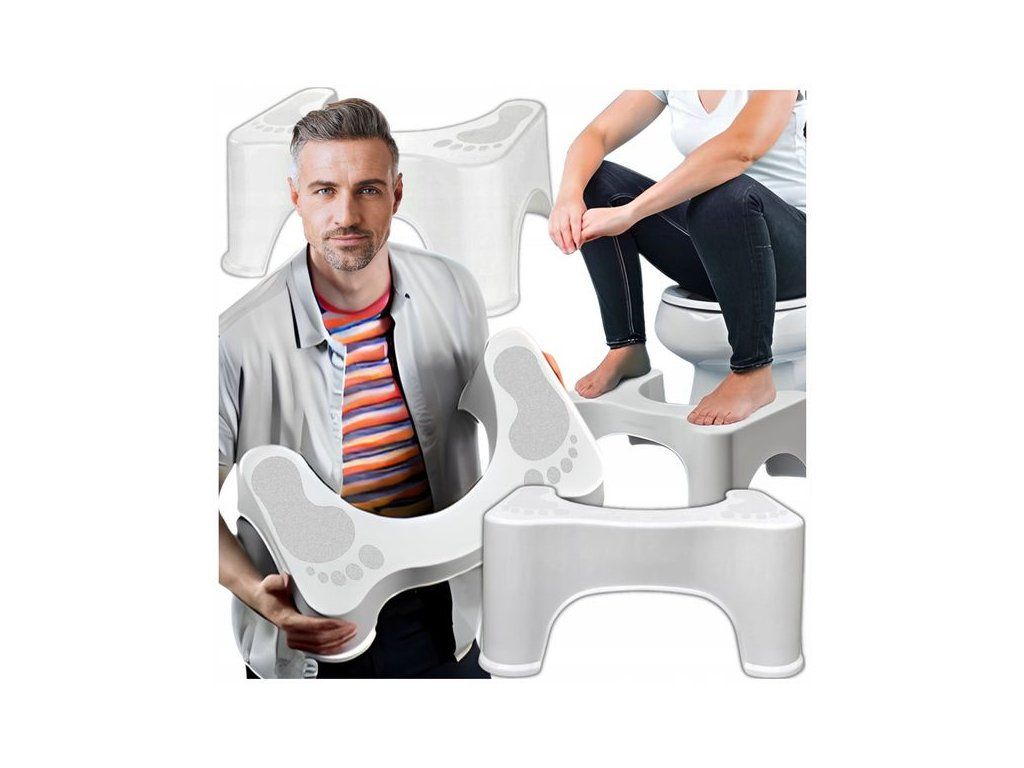 Ergonomická podnožka k WC značky Ruhhy pomáhá nastavit přirozenou polohu těla při použití toalety. Zvednutím nohou dochází k napodobení dřepu, což může přispět k pohodlnějšímu a efektivnějšímu vyprazdňování.
