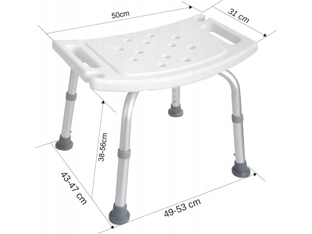 Taburet má široké sedátko z odolného PVC s integrovanými úchyty pro snazší manipulaci. Nohy jsou výškově nastavitelné v rozsahu 38–57 cm, takže si sed snadno přizpůsobíš postavě i sprchovému prostoru.
